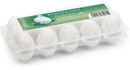 Vejce s bílou barvou skořápky vhodná pro kraslice, jsou snášena nosnicemi v halách. Vajíčka jsou hmotnostní skupina M (53–63 g), jakostní třída A.