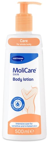 MoliCare Skin tělové mléko je určeno k ochraně velmi suché a citlivé pokožky. Obsahuje Nutriskin Komplex, který vytváří na pokožce ochrannou vrstvu a chrání před škodlivými vlivy. Tělové mléko zlepšuje elasticitu kůže a podporuje její obnovu. Emulze typu voda v oleji pokožku dlouhodobě hydratuje. Tělové mléko příjemně voní a pokožku nezanechává mastnou.