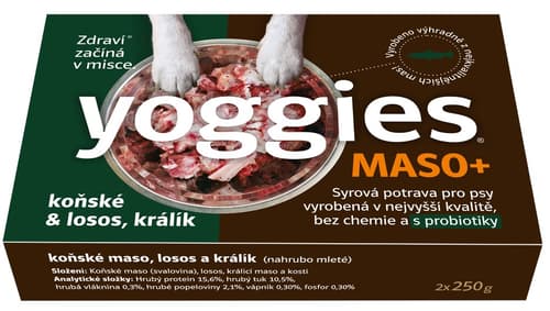 Yoggies MASO+ Koňské maso, losos a králík – syrová potrava pro psy