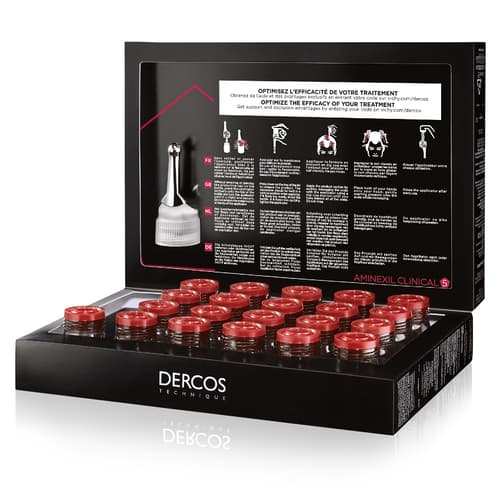 VICHY Dercos Aminexil Clinical je multiúčelová kůra proti vypadávání vlasů. Pro muže, kteří trpí opakujícím se nebo přetrvávajícím vypadáváním vlasů. Komplexní účinnost: Posiluje ukotvení vlasových kořínků v pokožce. Stimuluje vznik silného a odolného vlasového vlákna. Exkluzivní kombinace Aminexilu, referenční molekuly proti vypadávání vlasů s prokázaným klinickým účinkem, a 5 aktivních látek pro komplexní účinek. Navíc má každá ampule stimulující masážní aplikátor. Pro zdravější vlasovou pokožku. Vypadávání vlasů u mužů může být ovlivněno četnými vnitřními a vnějšími faktory, jež způsobí, že se vlas, kořínek a okolí vlasu dostanou do nerovnováhy. Právě tomuto výpadku vlasů se dá předejít. Měřená a pozorována účinnost proti vypadávání vlasů po 6 týdnech. Klinicky prokázáno. Po 3 týdnech je vlasová pokožka posílená. Optimální tolerance. Hypoalergenní. Balení: 21 ampulí o obsahu 6 ml.