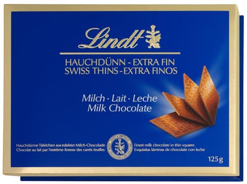 Lindt Thins Milk mléčná čokoláda125 gThis product is no longer available.Country: according to the current offerplease contact customer support for the exact information