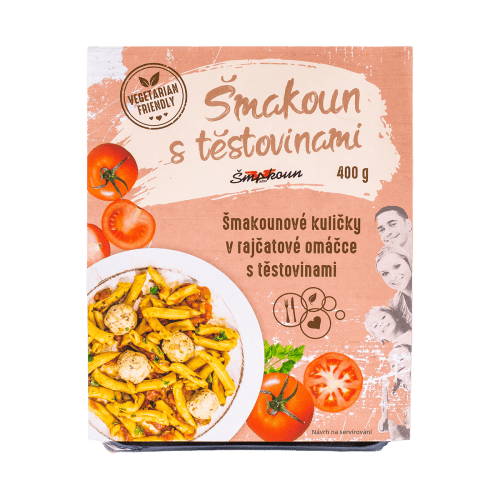 Šmakoun s těstovinami Šmakounové kuličky v rajčatové omáčce s těstovinami