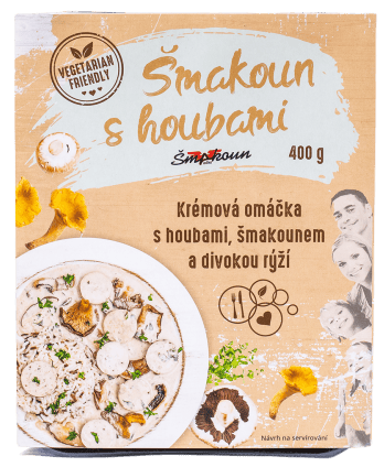 Šmakoun s houbami Krémová omáčka s houbami, šmakounem a divokou rýží