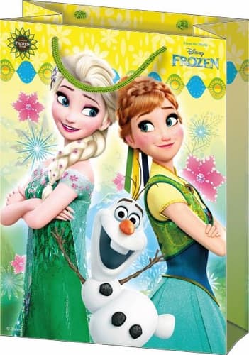 Dárková taška – Anna, Elsa, Olaf (Frozen) zelená, 19×25×9 cm