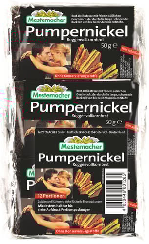 Mestemacher Pumpernickel trvanlivý chléb speciální 12×50 g0,6 kgTento produkt již není v nabídce.Země původu: dle aktuální nabídkypro přesnou informaci kontaktujte zákaznickou podporu