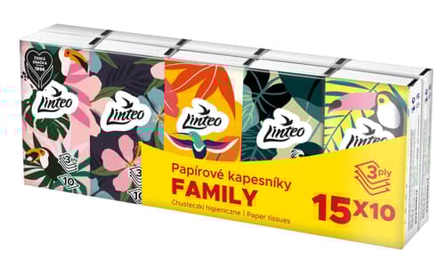Jemné bílé třívrstvé papírové kapesníky Linteo vám poskytnou jemnost, měkkost a pevnost.