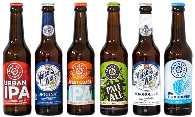 Maisel & Friends ALE Pack je dárkové balení šesti svrchně kvašených piv, které nabízí průřez chutí od této německé značky. Obsahuje Maisel´s Weisse Original, IPA, West Coast IPA, Urban IPA, Pale ALE a IPA Alkoholfrei. Tento 1,98l mix s obsahem alkoholu 0,5–4,5 % obj. je skvělý pro objevování rozmanitosti ALE piv.