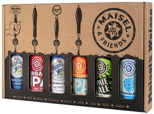 Německo,Dárkové balení obsahující průřez chutěmi značky Maisel & Friends. Balení obsahuje Maisel´s Weisse Original, Maisel´s Weisse Alkoholfrei, Urban IPA, Pale ALE, IPA Alkoholfrei, West Coast IPA. Toto balení potěší každého milovníka piva.