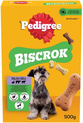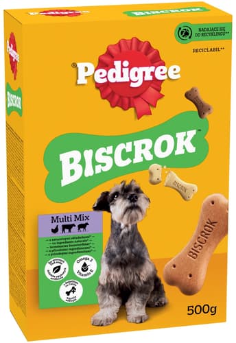 Pedigree Biscrok Original Bones sušenky pro psy. Tyto pamlsky obsahují omega-3 nenasycené mastné kyseliny, vitaminy a minerály a neobsahují žádná umělá barviva ani ochucovadla.