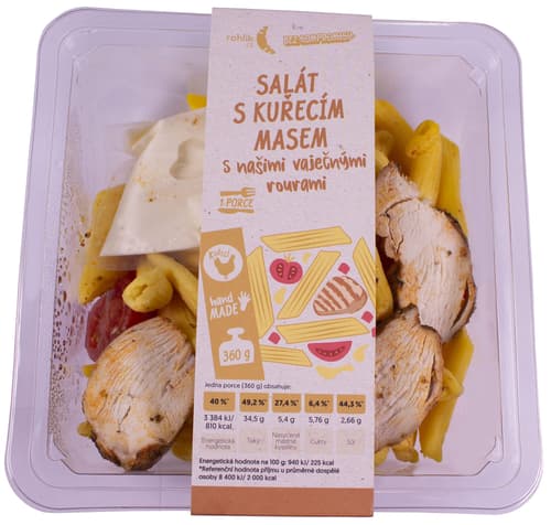 Rohlik.cz Salát z našich vaječných těstovin s pečeným kuřecím masem a cherry rajčaty