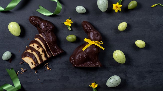 Česká republika,Tradiční zajíček s rozinkami uvnitř, politý tmavou polevou.