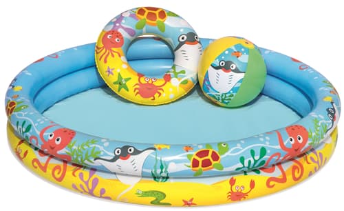 Bestway Nafukovací set – bazén, plavací kruh a míč1 ksTento produkt již není v nabídce.Země původu: dle aktuální nabídkypro přesnou informaci kontaktujte zákaznickou podporu