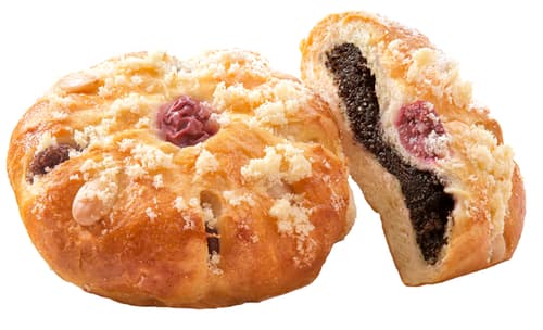 Ochutnejte lahodný makový koláček z těch nejkvalitnějších surovin. Koláček z kynutého těsta ukrývá dvě náplně. Jemný, sladký mák, višeň a nakonec je vše posypáno drobenkou. Tato delikátní kombinace se vám bude zaručeně rozplývat na jazyku.