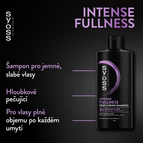 Syoss Intense Fullness šampon pro slabé vlasy bez objemu440 mlTento produkt již není v nabídce.Země původu: dle aktuální nabídkypro přesnou informaci kontaktujte zákaznickou podporu