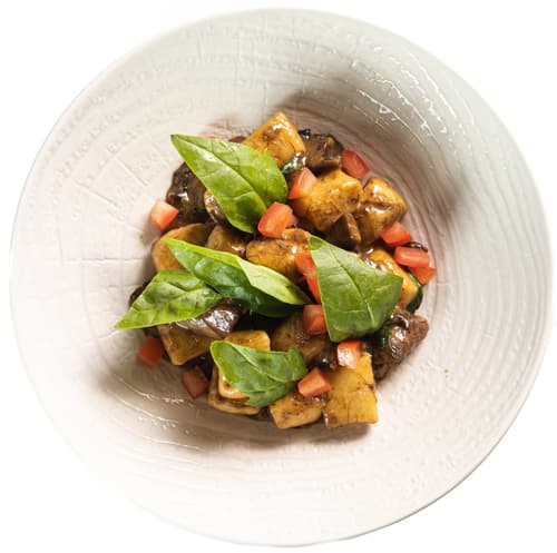 Květákové gnocchi s houbovou omáčkou ze Spojky Karlín