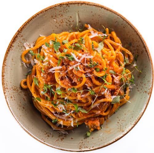 Spaghetti amatriciana s rajčaty a pecorinem z Pasta Fresca