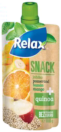 jablečný protlak (46 %), banánový protlak (28 %), pomerančová šťáva z koncentrátu (10 %), meruňkový protlak (5 %), mangový protlak z koncentrovaného protlaku (5 %), mandarinková šťáva z koncentrátu (4 %), quinoa bílá (1 %), jablečná šťáva z koncentrátu (1 %), vitamin C 24 mg (30 %**), aroma.