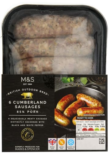 Marks & Spencer Britské vepřové cumberlandské klobásy 6 ks