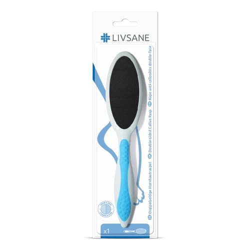 Livsane pilník na otlaky nohou oboustranný je pilník s hrubým a jemným smirkovým povrchem. Šetrně a důkladně odstraňuje mozoly a ztvrdlou kůži. Má ergonomicky tvarovanou rukojeť s protiskluzovým povrchem pro snadné použití i na těžko přístupných místech. Balení obsahuje 1 ks.