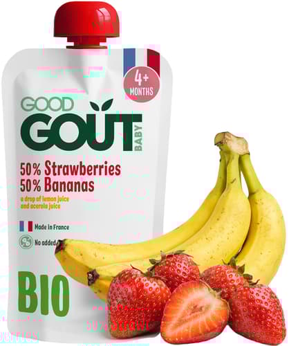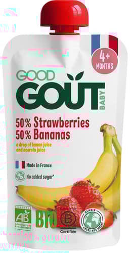 Dopřejte svým nejmenším lahodné BIO pyré Good Gout s jahodou a banánem! Tato 120g kapsička ze Španělska je v BIO kvalitě, což znamená žádné GMO, pesticidy ani umělá hnojiva. Je ideální pro kojence a malé děti od ukončeného 4. měsíce. Navíc je v praktickém znovu uzavíratelném obalu, takže si ji můžete vzít kamkoliv. Zdravá a chutná svačinka!