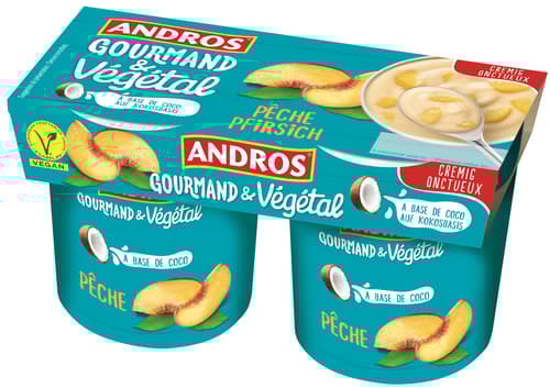 Andros Gourmand & Végétal Dezert z kokosového nápoje s broskvemi 2×120g