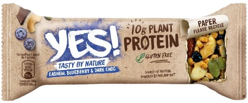YES! proteinová tyčinka s kešu ořechy, dýňovými semínky, borůvkami a hořkou čokoládou