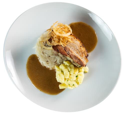 Vepřový bůček s kedlubnovým zelím a špeclemi z restaurace Chateau St. Havel