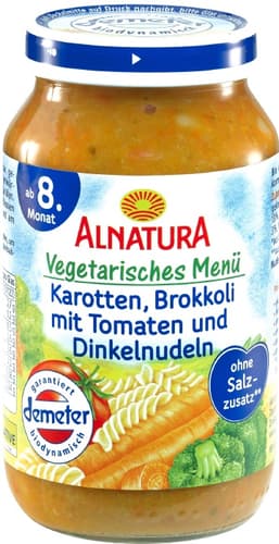 Alnatura BIO Příkrm s mrkví, brokolicí, rajčaty a špaldovými těstovinami