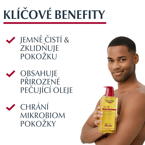 Eucerin pH5 Relipidační sprchový olej stimuluje přirozenou ochranu pokožky díky formuli pH5 Enzyme Protection. Sprchový olej je vhodný ke každodennímu použití pro péči o citlivou pokožku. Díky své bohaté konzistenci podporuje přirozené obranné mechanismy pokožky a chrání ji před dehydratací. Pokožka je po jeho použití jemná a hedvábně hebká. Balení: 400 ml.