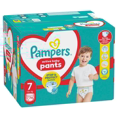 Plenkové kalhotky Pampers Pants mají jedinečnou kapsu Stop & Protect, která spolu s dokonale padnoucím pružným pasem poskytuje až 12 hodin úplné ochrany proti protečení. Mají také super absorpční jádro, které okamžitě absorbuje tekutinu, a dvojité bezpečnostní manžetky, které pomáhají předcházet protečení kolem nožiček.