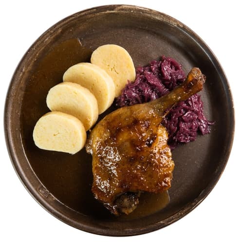 Pečená kachna s červeným zelím a bramborovým knedlíkem od Jana Bureše