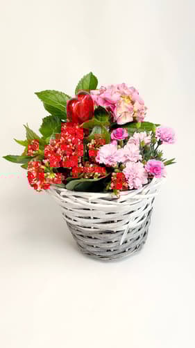Proutěný koš s hortenzií a letními květinami1 pcThis product is no longer available.Country: according to the current offerplease contact customer support for the exact information