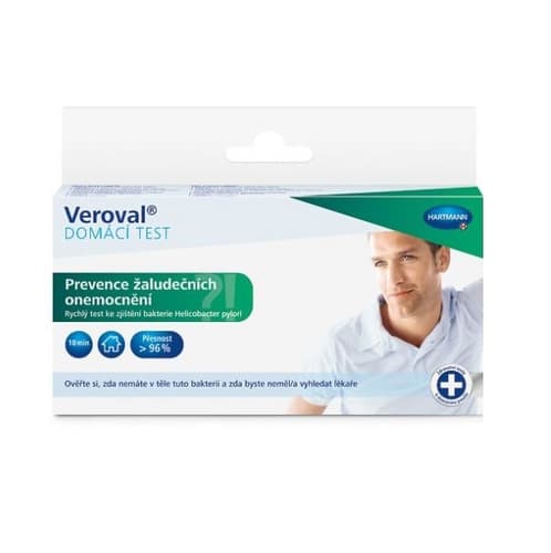 Diagnostický zdravotnický prostředek in vitro. Pomocí domácího jednorázového testu Veroval - Žaludeční prevence rychle a spolehlivě zjistíte, zda je v těle bakterie přítomna, a je proto třeba zahájit prevenci. Stačí jedna kapka krve ze špičky prstu a deset minut vašeho času. Potíže se mohou projevovat bolestmi žaludku či nevolností, jejichž příčinou může být přítomnost žaludeční bakterie Helicobacter pylori, představující významný rizikový faktor při vzniku zánětu žaludeční sliznice (gastritidy) a žaludečních vředů. Balení obsahuje 1 ks jednorázového testu.