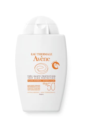 Minerální fluid Avene Sun poskytuje velmi vysokou ochranu před slunečním zářením citlivé a intolerantní kůži. Fluid neobsahuje chemické filtry, je hypoalergenní, nekomedogenní, vysoce voděodolný a je bez parfemace. Jeho lehká textura zmatňuje, lehce se vstřebává, rozjasňuje a hydratuje pleť. Termální voda Avéne zklidňuje pokožku a působí proti podráždění. Balení obsahuje 40 ml.