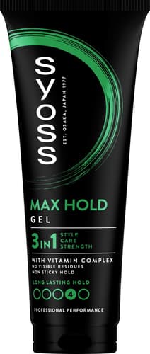 Stylingový gel na vlasy Syoss Max Hold je 3v1 pomocníkem pro vaše vlasy. Nastyluje je, pečuje o ně a posílí je pro dlouhotrvající, zdravě vypadající účesy. Složení gelu je obohaceno o vitaminový komplex, vytvořený z kombinace panthenolu a niacinamidu, aby poskytlo zpevněnou vlasovou strukturu.