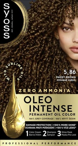 Barva na vlasy Syoss Oleo Intense v půvabně hnědém odstínu pro olejem posílené dlouhotrvající barvení bez amoniaku a pocit silných a zdravých vlasů. Pečující receptura pomáhá barevným pigmentům proniknout hluboko do vlasových vláken pro sytou, dlouhotrvající barvu a 100% krytí šedin.