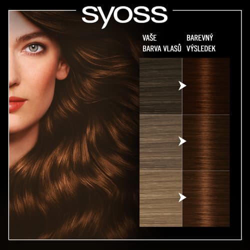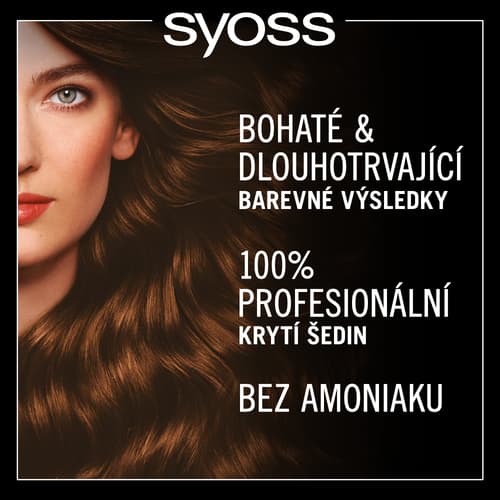 Barva na vlasy Syoss Oleo Intense v odstínu hnědá moka pro olejem posílené dlouhotrvající barvení bez amoniaku a pocit silných a zdravých vlasů. Pečující receptura pomáhá barevným pigmentům proniknout hluboko do vlasových vláken pro sytou, dlouhotrvající barvu a 100% krytí šedin.