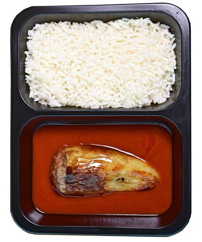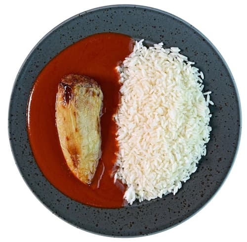 Plněný paprikový lusk mletým masem, rajská omáčka a dušená rýže z Pivnice U Čápa