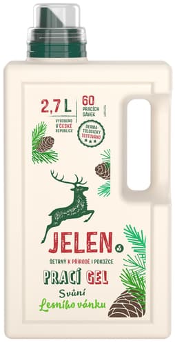 - Praní v pračce: 30–60 °C, základní dávka pro běžné praní 45 ml. V měkké vodě pere Jelen lépe.