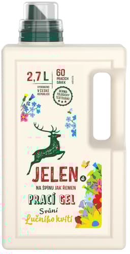 - Praní v pračce: 30–60 °C, základní dávka pro běžné praní 45 ml. V měkké vodě pere Jelen lépe.