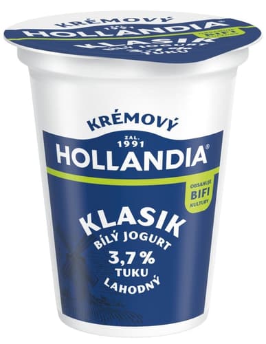 Jogurt Hollandia Klasik obsahuje kultury BiFi. Jogurt má krémovou chuť díky vyššímu obsahu tuku 3,7 %.