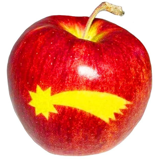 Obrázek na jablku nevzniká žádným chemickým procesem. Když je jablko malé, farmáři na jeho slupku na jaře nalepí malou šablonku a slunce tak vykreslí nádherný motiv, který potěší vás i vaše milované.