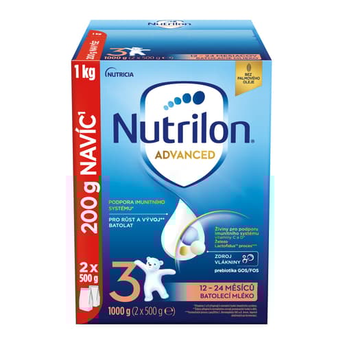 Výrobek je určen pro výživu dětí od 1 roku věku. Nutrilon 3 Advanced má být součástí smíšené a vyvážené stravy dítěte a není náhradou mateřského mléka. Pro zdraví dětí je důležité důsledné dodržování návodu na přípravu i uvedených doporučení. Nevhodné pro děti do 1 roku věku.