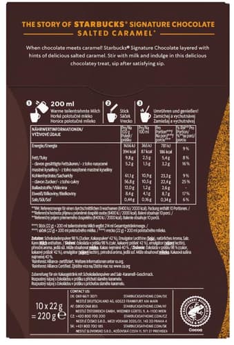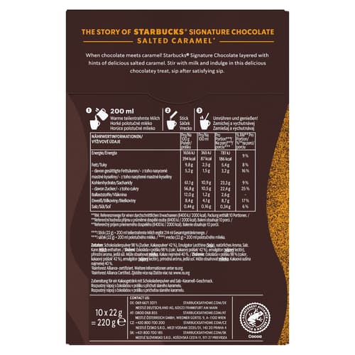 Starbucks Signature Chocolate Horká čokoláda s příchutí slaného karamelu220 gTento produkt již není v nabídce.Země původu:dle aktuální nabídkypro přesnou informaci kontaktujte zákaznickou podporu
