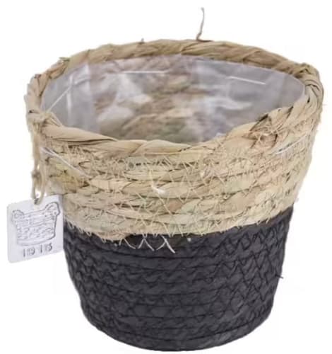 Obal na květináč mořská tráva, přírodní + černá Ø 14 cm