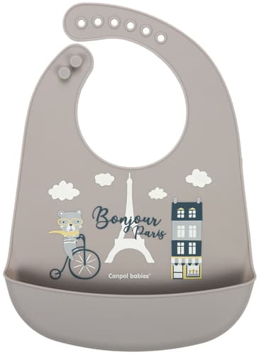 Canpol babies Bryndák silikonový s kapsou Bonjour Paris – béžový