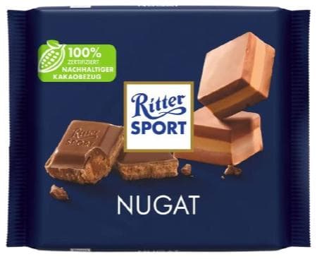 Mléčná čokoláda s pralinkovou náplní od značky Ritter Sport.