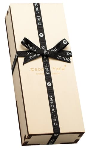 Ručně kompletovaný dřevěný box v sobě ukrývá tři zkumavky z českého skla, které dokonale uchovávají kvalitu pepřových zrn, jimiž jsou naplněny. Ohromí vás také elegantní, ruční balení, díky kterému už s dárkem nebudete mít žádnou starost.