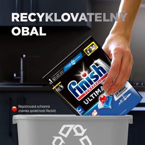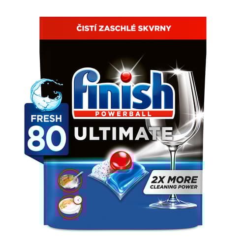Kapsle do myčky Finish Ultimate pro naprostou čistotu a diamantový lesk. Odstraňují všechny druhy nečistot a to bez předmývání. Jejich pokročilé tříkomorové složení s technologií ACTIVELIFT je účinné v boji proti zaschlým skvrnám. Obal kapslí je biologicky rozložitelný a 100% rozpustný ve vodě. Celé balení je recyklovatelné.