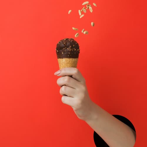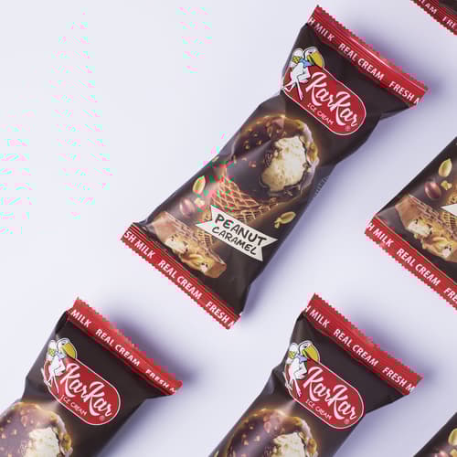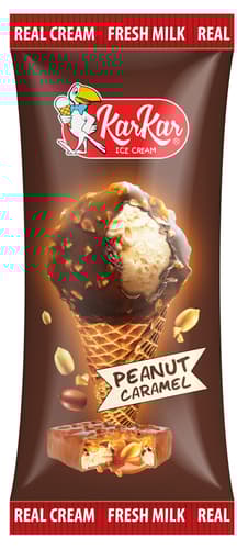 Kar Kar Arašídová zmrzlina s karamelem v kornoutu s kakaovou polevou a arašídy